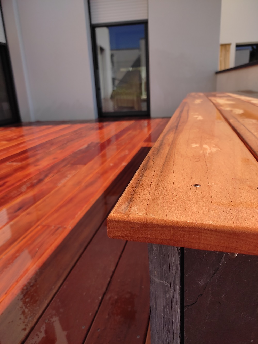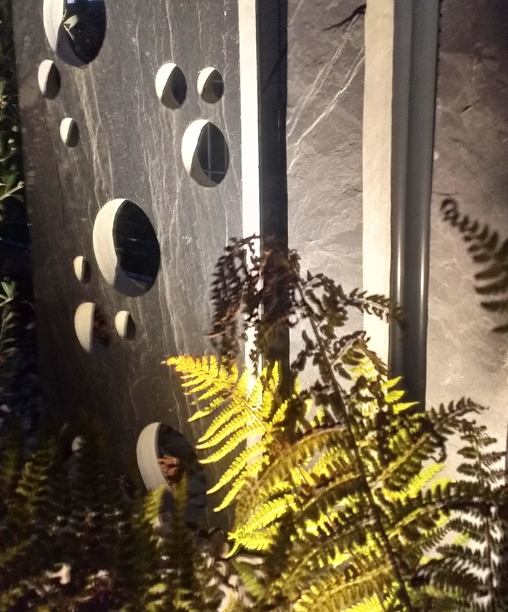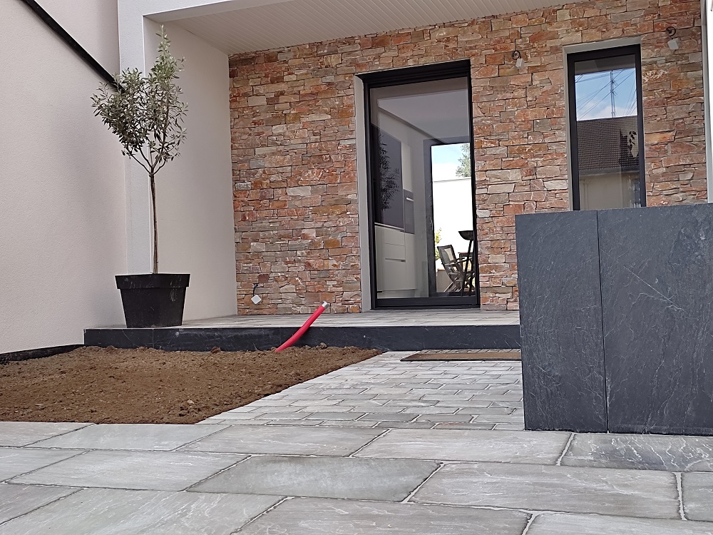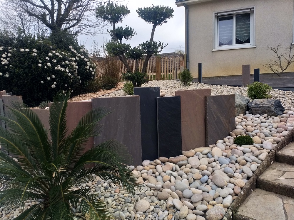 - Maçonneries décoratives (mur en pierre, éléments bois/minéral)